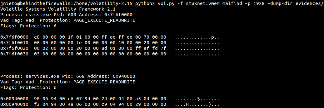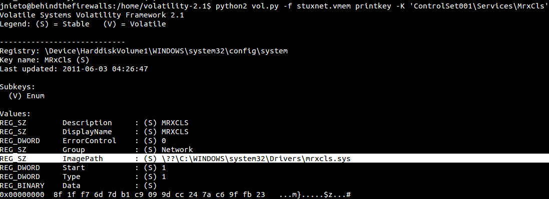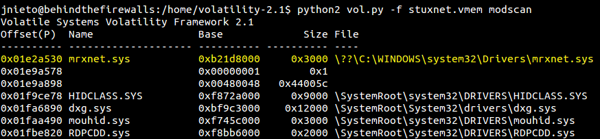 http://www.behindthefirewalls.com/2014/01/stuxnet-memory-forensics-volatility-II.html