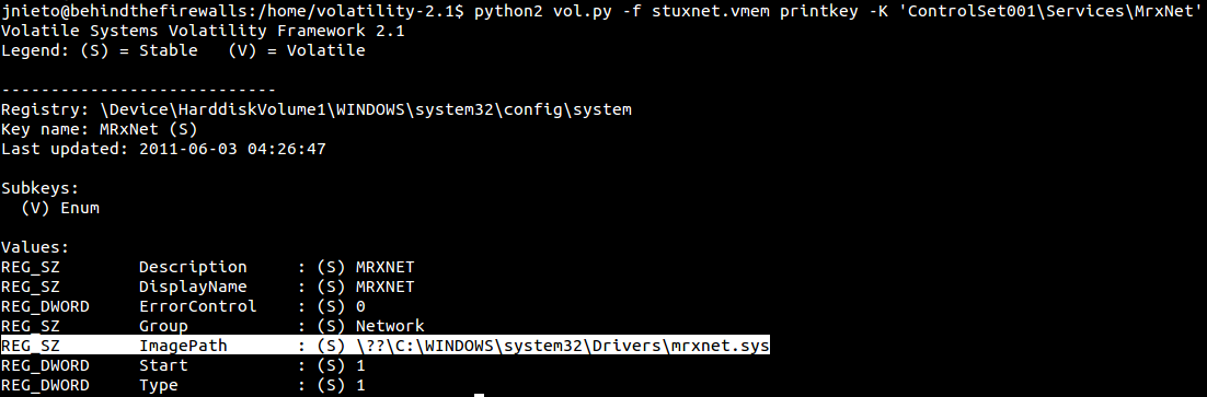 http://www.behindthefirewalls.com/2013/12/stuxnet-trojan-memory-forensics-with_16.html