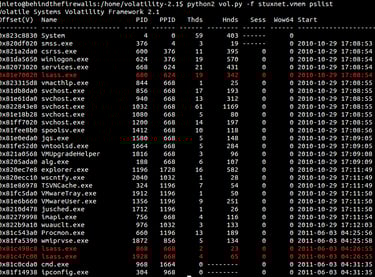 Les travaux présentés s’appuient sur deux analyses forensic particulièrement détaillées portant sur un dump mémoire issu d’un système compromis par le malware Stuxnet. Les auteurs utilisent le framework Volatility, outil de référence dans le domaine du Digital Forensics and Incident Response (DFIR), permettant d’extraire et d’interpréter les artefacts présents en mémoire vive.