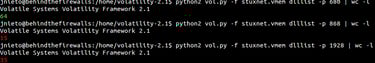 Comparaison du nombre de DLL chargées dans différentes instances du processus lsass.exe à l’aide du plugin dlllist de Volatility, combiné à la commande wc -l pour effectuer un comptage rapide. Les résultats montrent des écarts significatifs entre les processus (PID 680, 868 et 1928), avec un nombre de modules chargés anormalement faible pour certaines instances. Cette divergence comportementale est incohérente avec un fonctionnement normal du processus lsass.exe, qui devrait présenter une structure homogène. Elle constitue un indicateur technique fort d’altération du processus, suggérant une injection de code, une manipulation des structures de chargement des DLL ou une tentative de dissimulation de modules malveillants en mémoire.